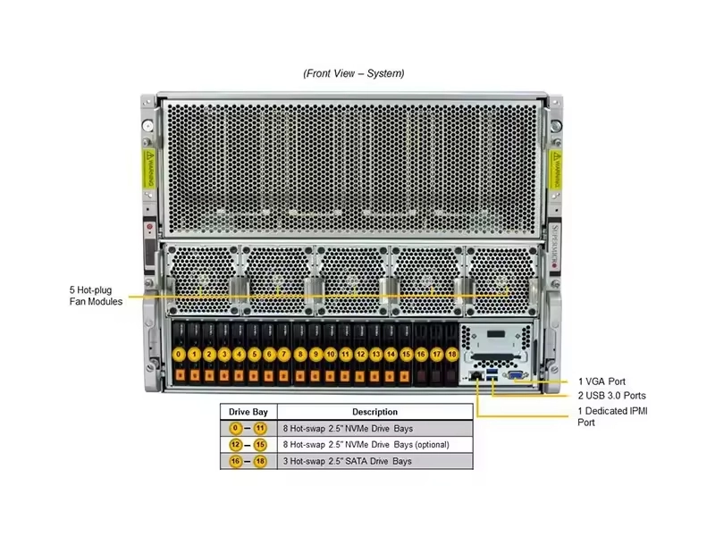 Powered by NVIDIA Blackwell B300 GPUs, this server delivers significantly higher throughput for both training and inference compared to previous generations. It supports FP8 and FP4 precision, accelerating large model training cycles by up to 3x.
